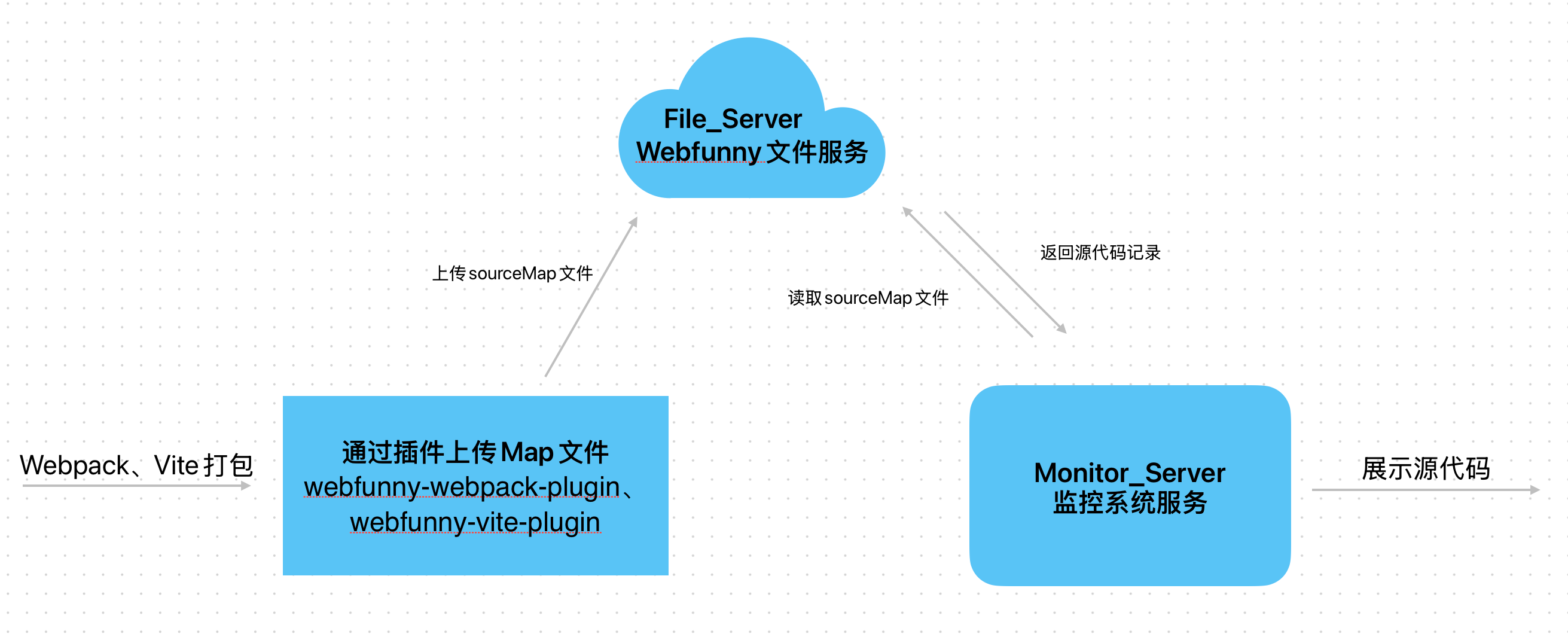 传统的sourceMap解析方案,是需要用户去维护map文件版本,想办法把错误代码和源文件对齐,说实话,这一步真的十分繁琐。为了能够解决这一痛点,打造一个自动化的解析方案,我们需要在整个系统中内容一个文件系统服务,用于上报和下载map文件