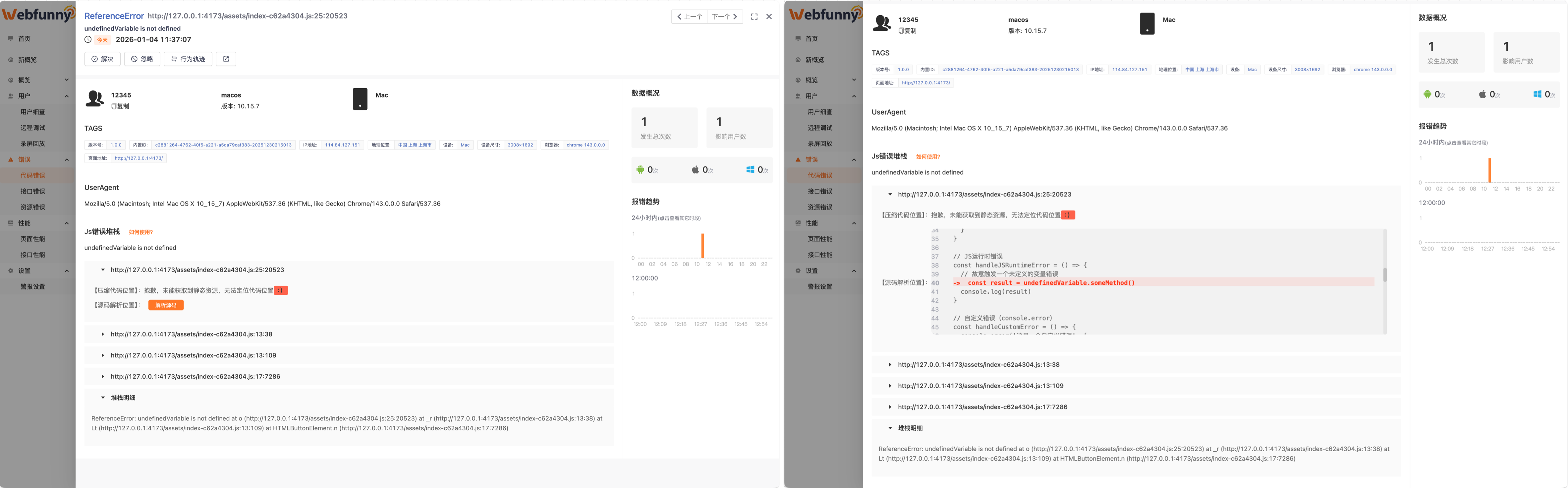 在前端监控系统中,SourceMap 解析是定位线上代码错误的核心功能。然而,传统的手动上传 SourceMap 文件的方式存在诸多问题。因为涉及到生成,管理,上传等多个步骤,只要有一步对不上,基本上很难解析出来,所以我们增加webpack和vite自动上传sourceMap的插件,在打包的时候上传map文件,查看的时候精准锁定源文件,省时省力。